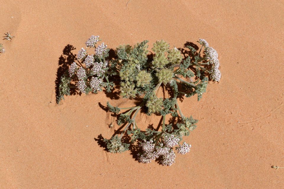 La plante que je viens de décrire présente un intérêt tout particulier en ce que les aiguillons des côtes secondaires du fruit ne sont pas disposés sur un seul rang comme dans les espèces connues jusqu'ici du genre Daucus, mais sur deux, comme dans les genres Orlaya et Pseudorlaya. Toutefois, si l'on prend en considération l'ensemble des caractères, il est évident que les véritables affinités de la plante sont avec le Daucus sahariensis Murb. répandu, lui aussi, dans le Sahara algérien. Elle se distingue cependant de cette dernière espèce, non seulement par le caractère déjà mentionné, mais encore par sa pubescence plus raide et plus dense, par les divisions des folioles de l'involucre plus nombreuses, beaucoup plus courtes et plus divergentes, par ses pétales jaunâtres, et non pas blancs, ainsi que par les styles moins grêles, atténués insensiblement de la base au sommet.