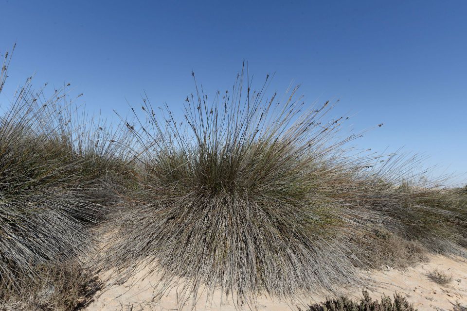 Ce jonc forme des gros buissons aux longues tiges vulnérantes sur les dunes des côtes atlantiques du Sahara.