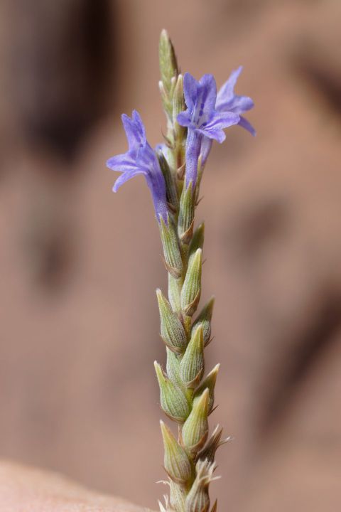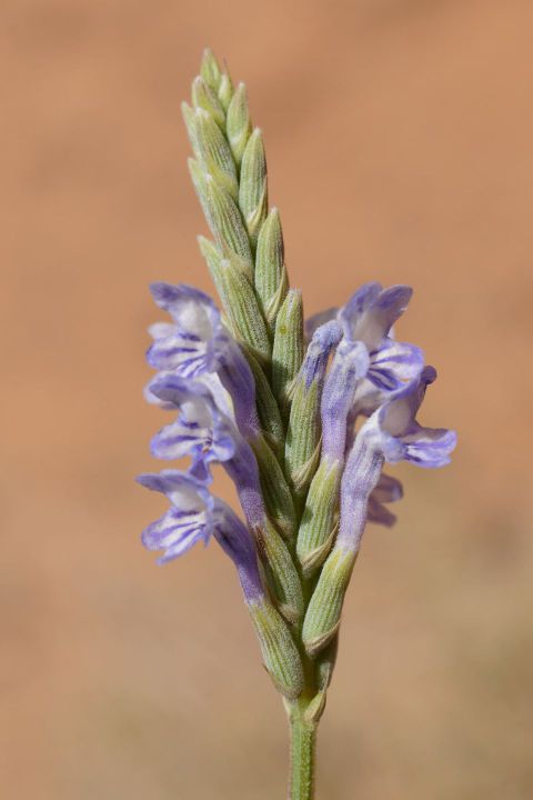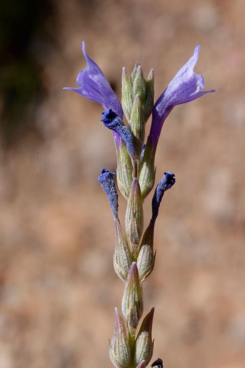 Lavandula coronopifolia se reconnait à ses fleurs bleu pâle et bractées très courtes alors que le calice est très long.