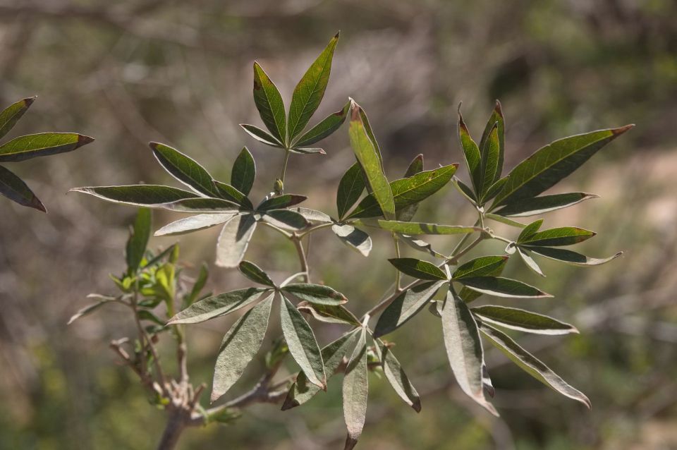 Feuilles opposées, à 5-7 folioles allongées, lancéolées, entières, vertes dessus, blanchâtres tomenteuses dessous, tombant à l'automne.