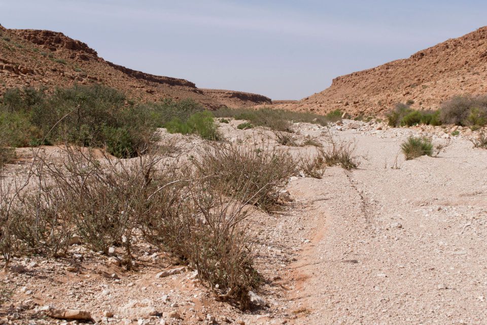 Il pénètre nettement dans le Sahara au fil d'oueds qui conservent longtemps une nappe phréatique sous leur lit.