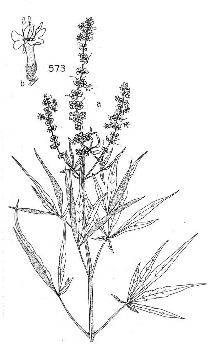 Fleurs à sépales soudés en tube terminé par 5 dents inégales, velu-tomenteux; 5 pétales bleu-lilacé soudés en tube, plus ou moins pubescents sur leur moitié inférieure, à lobes étalés, disposés en deux lèvres inégales; 4 étamines saillantes, didynames, insérées sur le tube de la corolle; ovaire supère à style long.