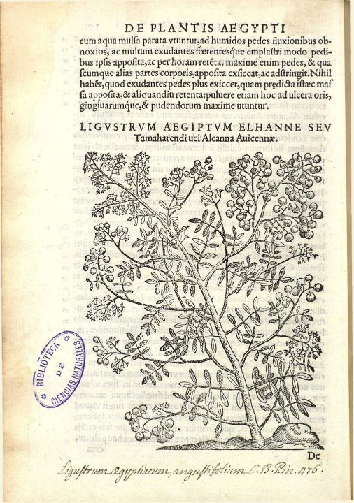 Lawsonia inermis = Ligustrum aegiptum elhanne - Alpino, 1592 - De plantis aegypti p.046